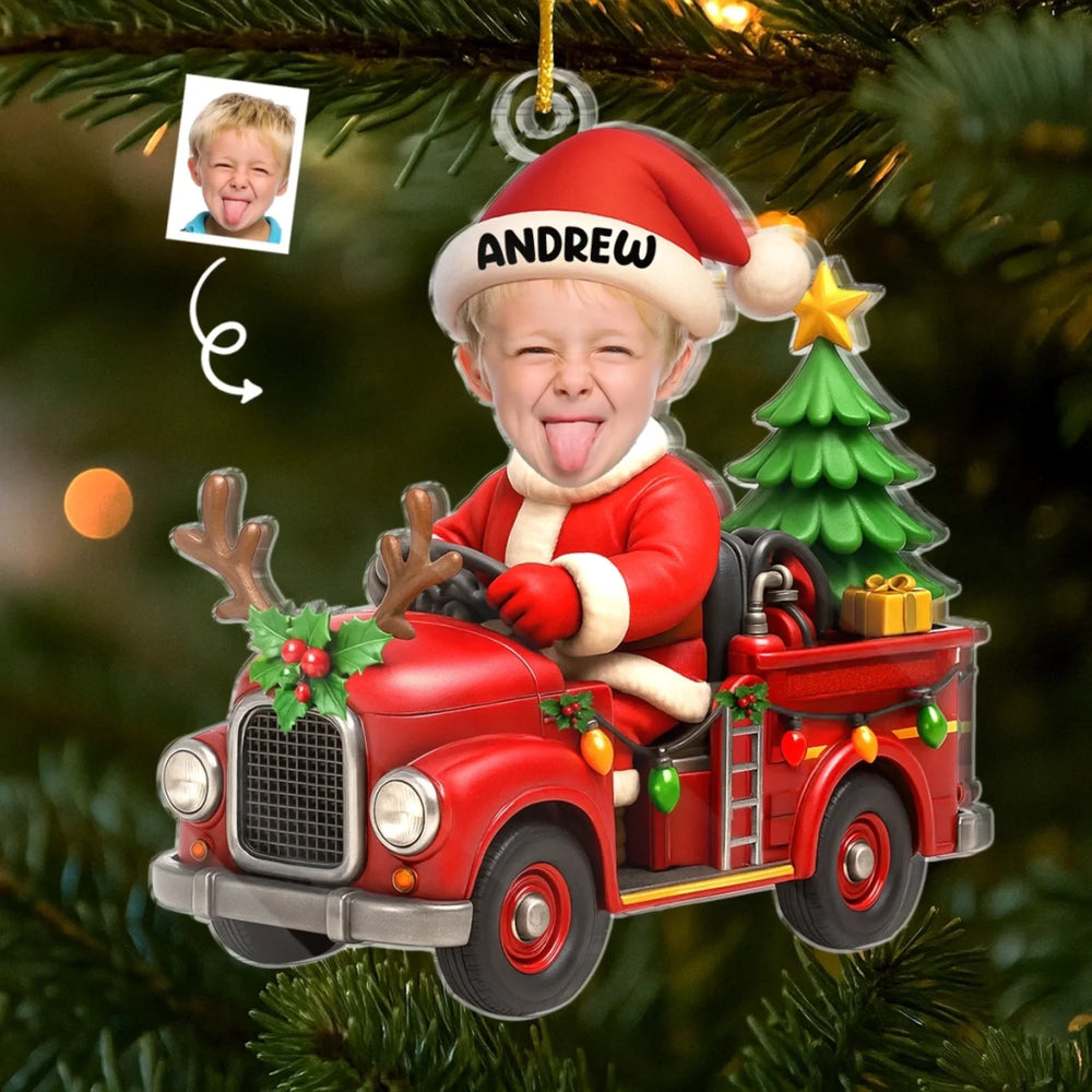 Custom Photo Acrylic Ornament - Personalized Christmas Birthday Gifts For Kids - Driving Into Holiday Magic
