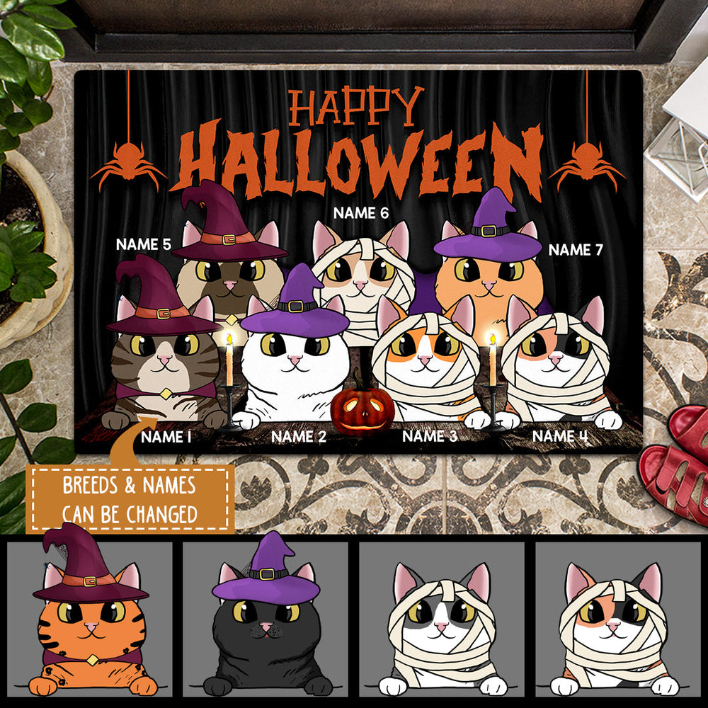 Happy Halloween - Purple Smoking Pumpkins - Personalized Cat Halloween Doormat