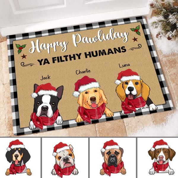 Happy Pawliday Ya Filthy Humans Personalized Dog Doormat DM-NB520