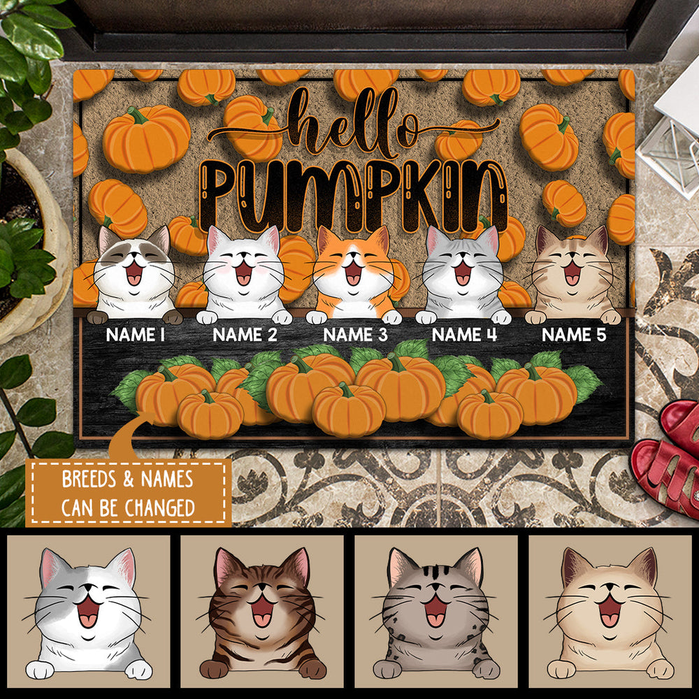 Hello Pumpkin - Pumpkin Background - Personalized Cat Autumn Doormat