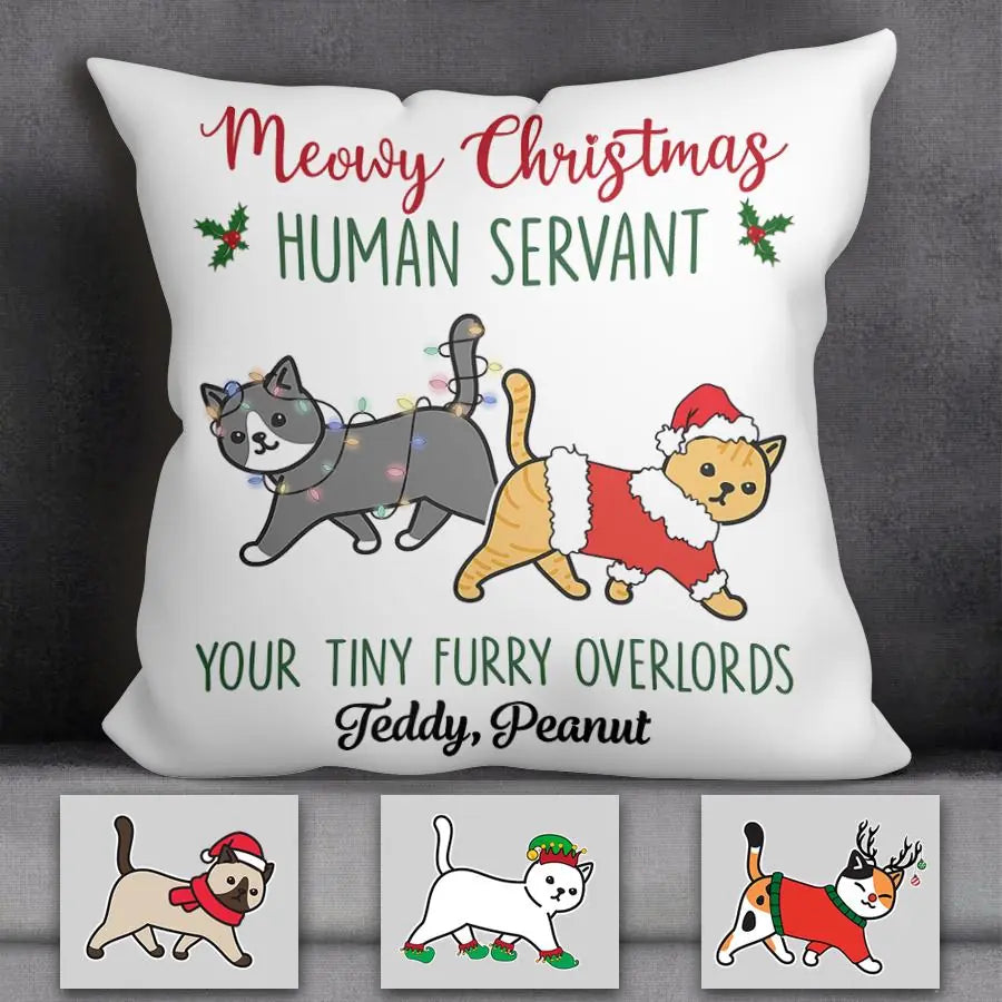 Meowy Chistmas Walking Cat Personalized Pillow P-NB2003