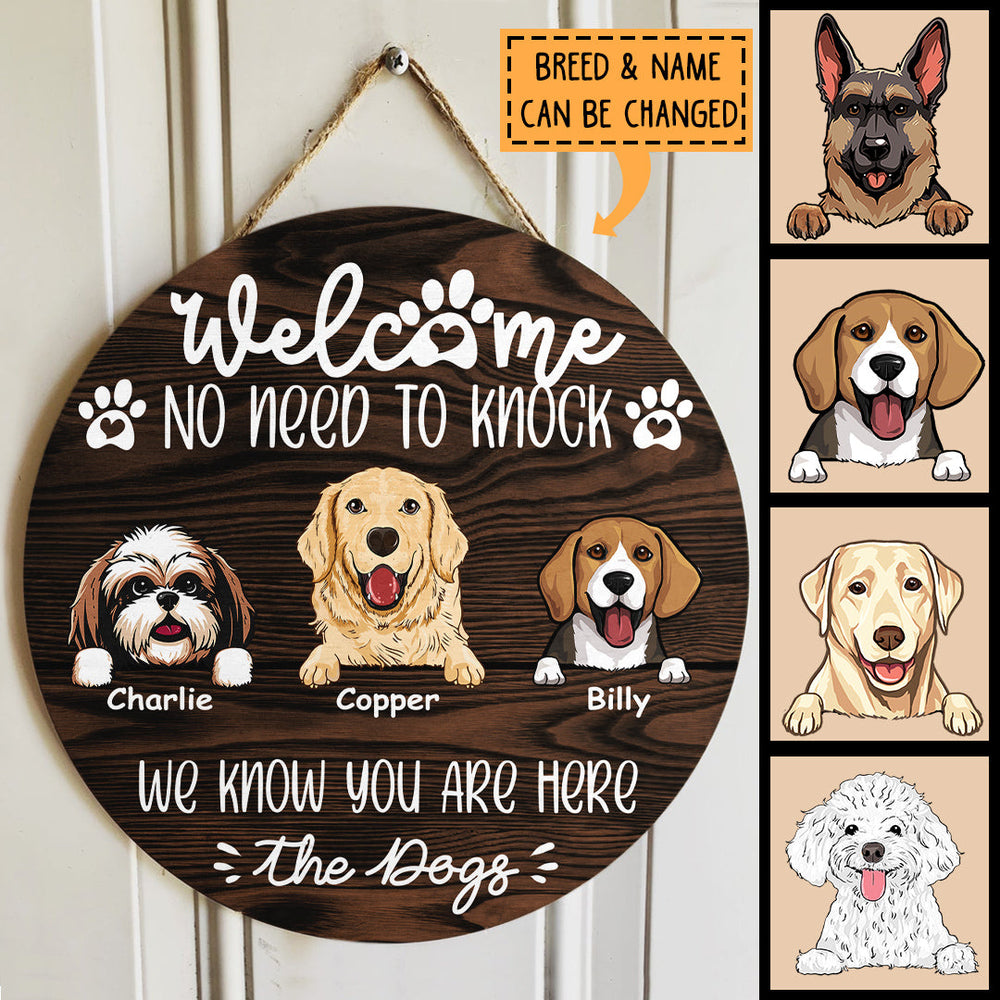 No Need To Knock Custom Wooden Sign, Gifts For Dog Lovers, We Know You Are Here From The Dogs Welcome Signs