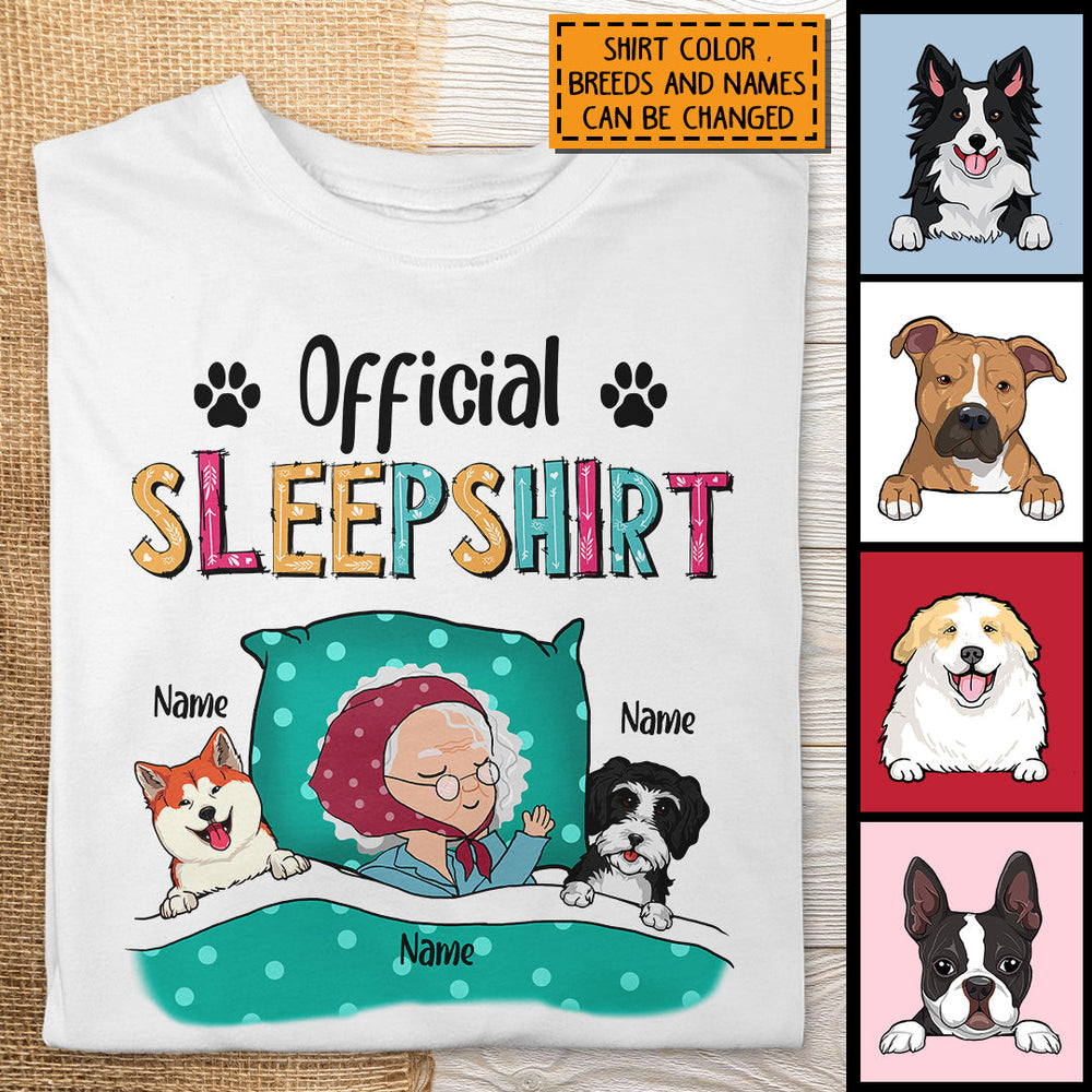 Official Sleep Shirt, Old Lady With Her Dogs, Personalized Dog Breeds T-shirt, Gift For Dog Lovers